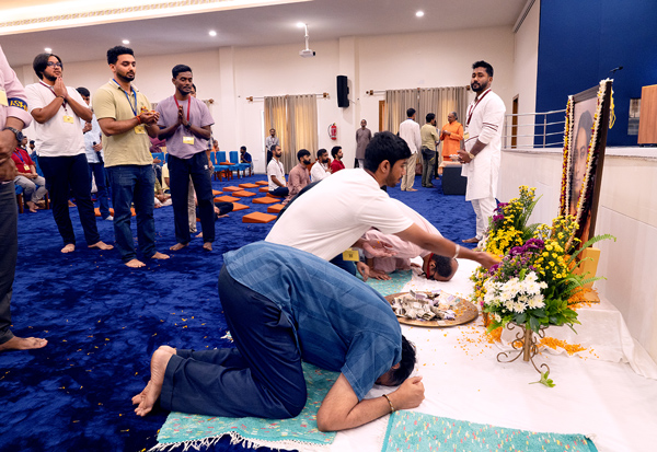 The Open House allowed young sadhaks to interact informally with Swamijis amidst the radiant glow of diyas. Personal moments deepened bonds of guidance and fellowship.