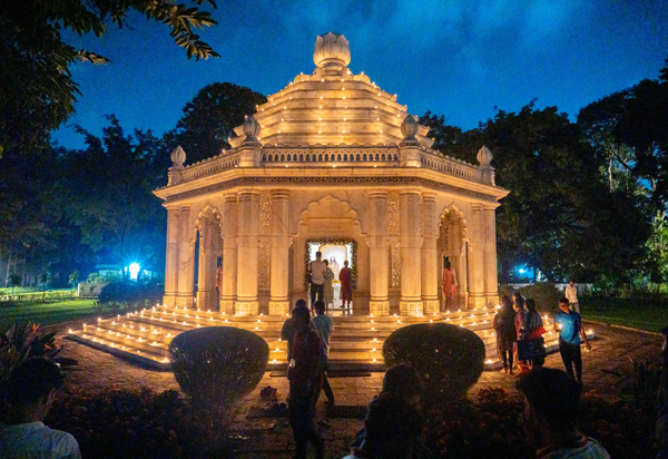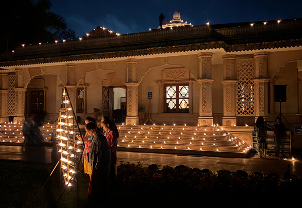 A night of light and joy — the ashram aglow with devotion during the Sangam Open House.
