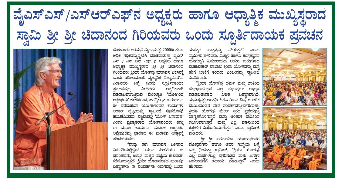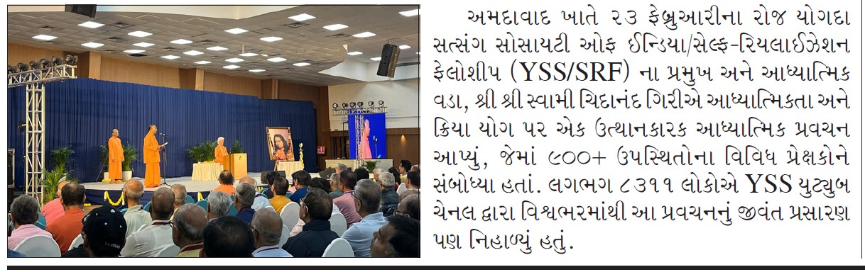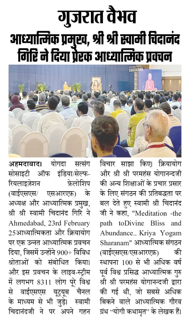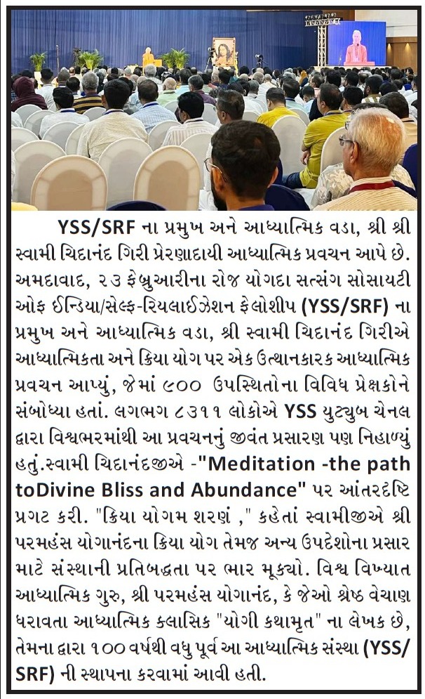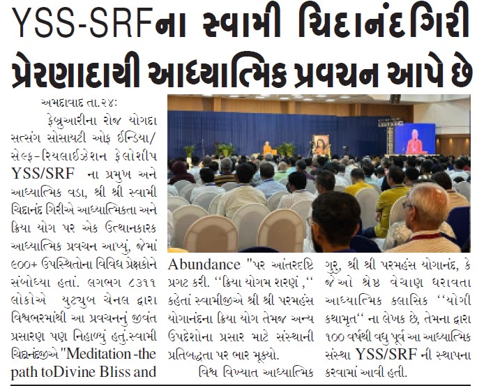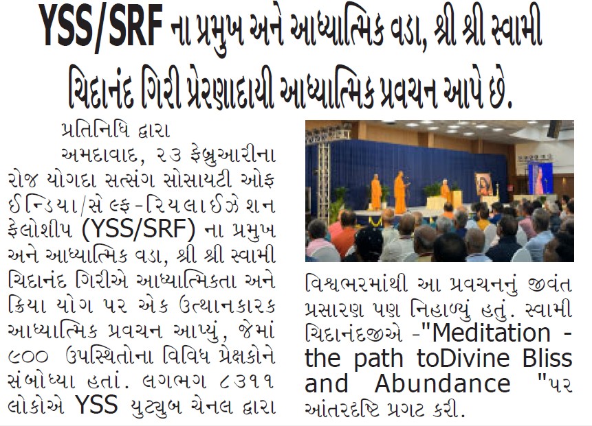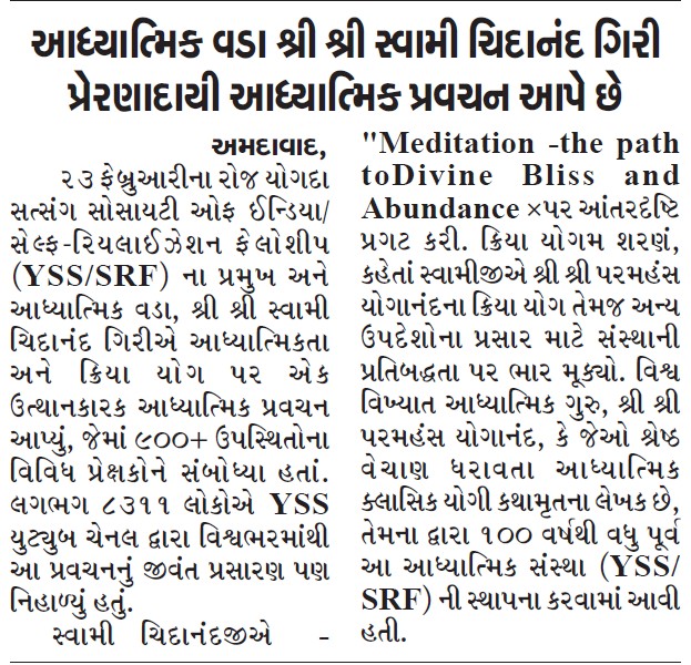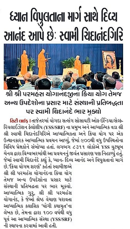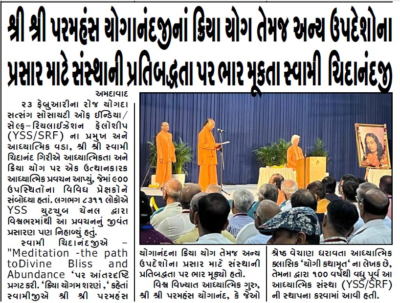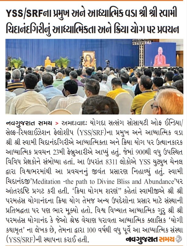 Sri Sri Swami Chidananda Giri, president and spiritual head of Yogoda Satsanga Society of India/Self-Realization Fellowship (YSS/SRF) toured four major cities in India (Bengaluru, Chennai, Ahmedabad, and Noida) and Kathmandu in Nepal, where special one-day programmes were organized.