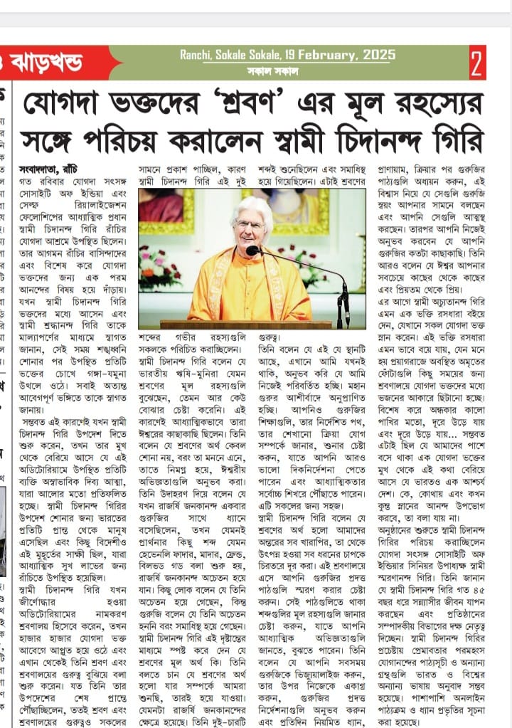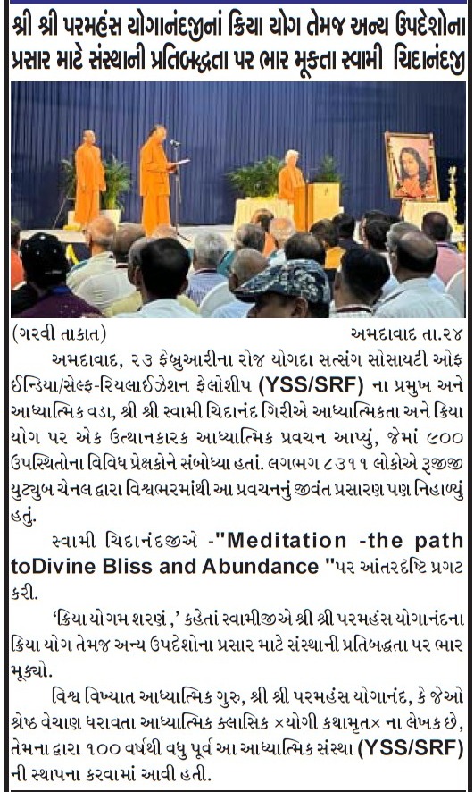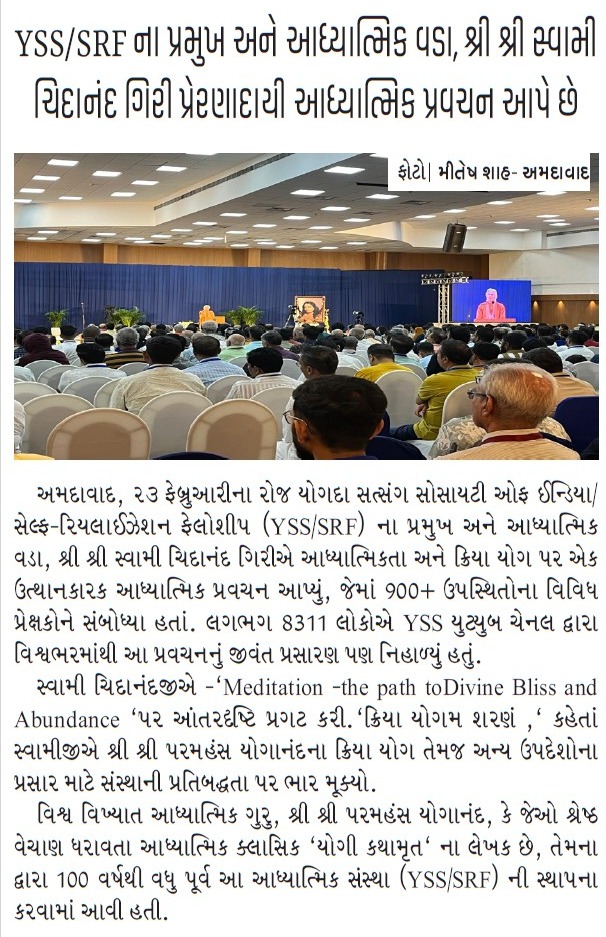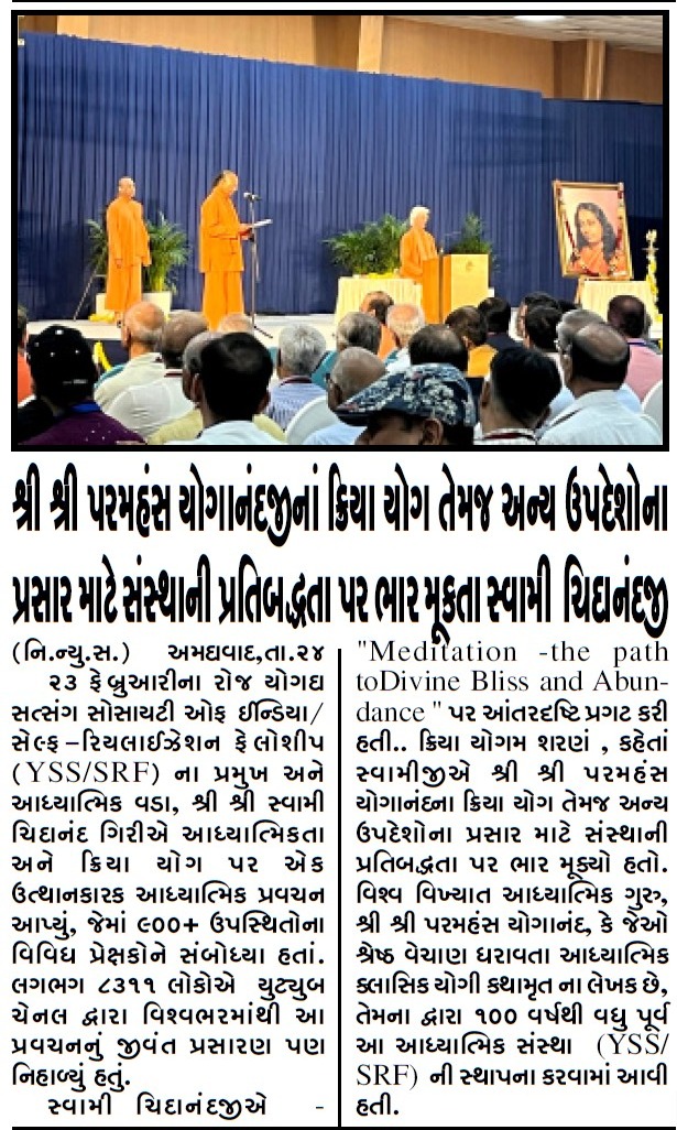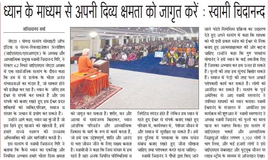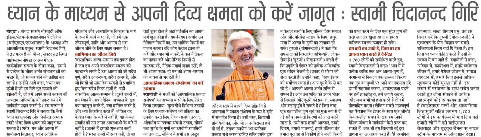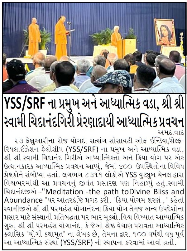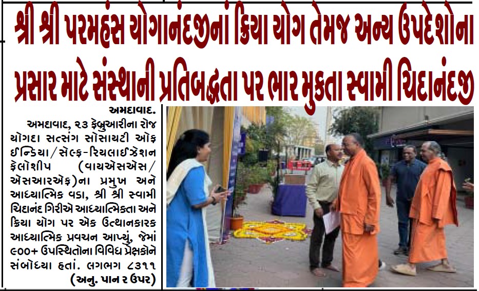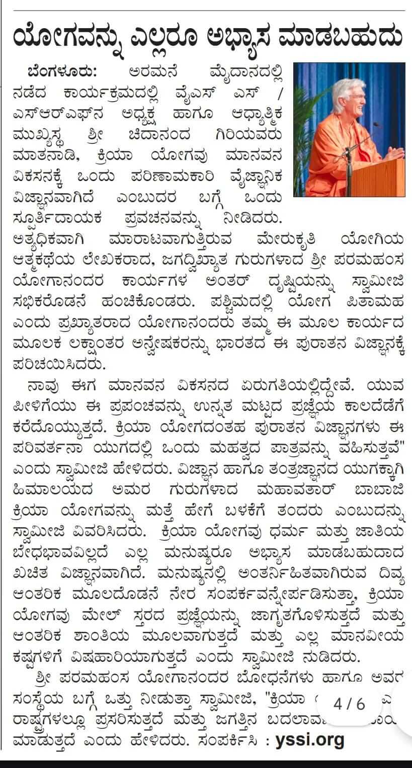 Sri Sri Swami Chidananda Giri, president and spiritual head of Yogoda Satsanga Society of India/Self-Realization Fellowship (YSS/SRF) toured four major cities in India (Bengaluru, Chennai, Ahmedabad, and Noida) and Kathmandu in Nepal, where special one-day programmes were organized.
