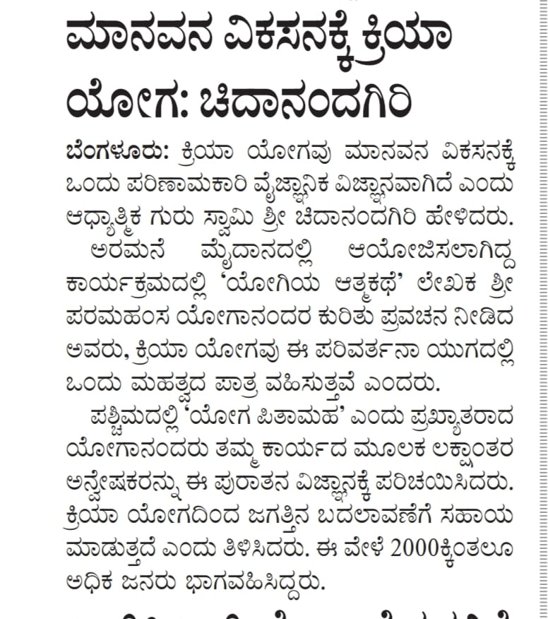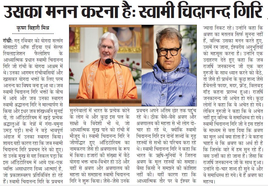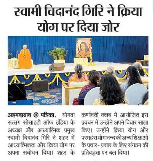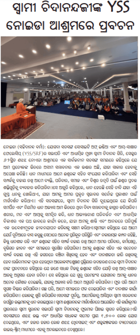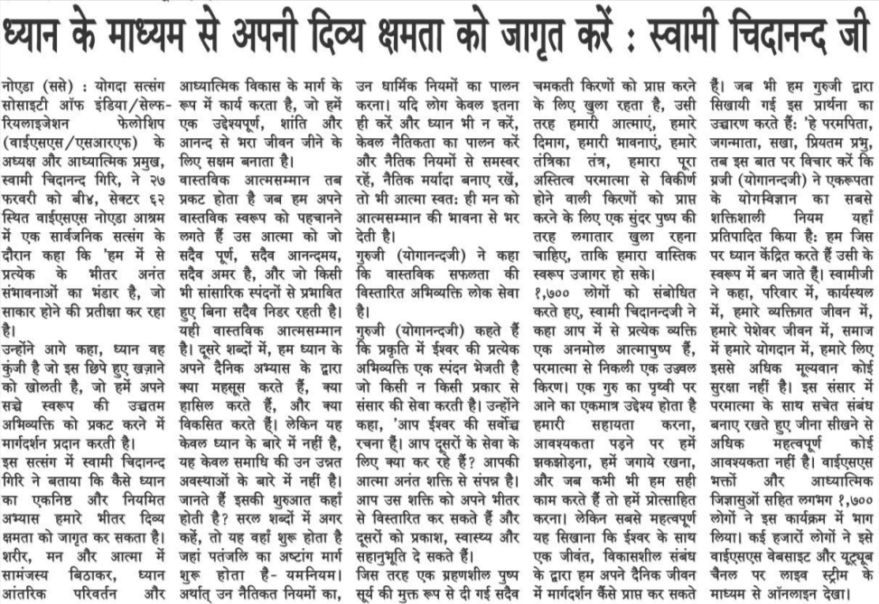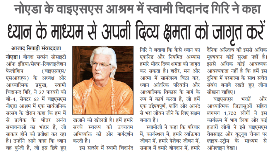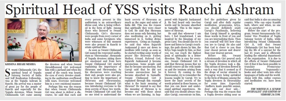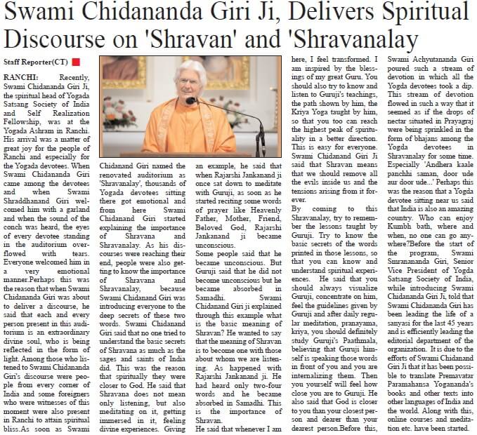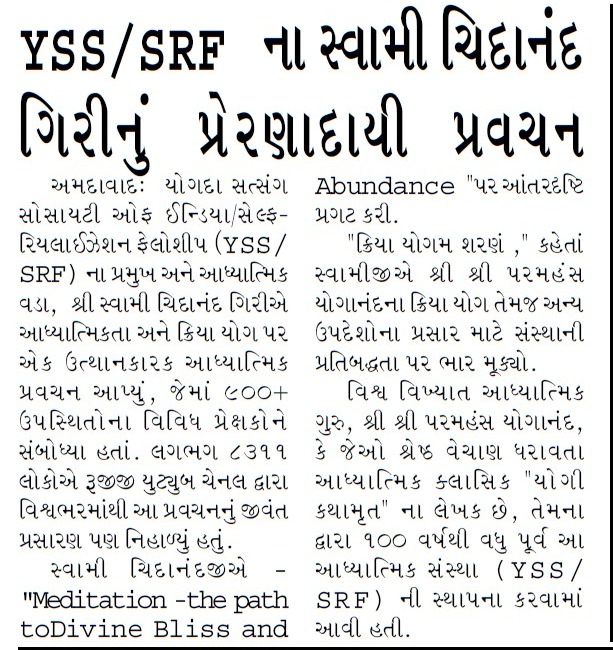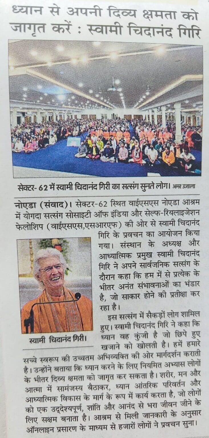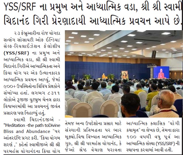 Sri Sri Swami Chidananda Giri, president and spiritual head of Yogoda Satsanga Society of India/Self-Realization Fellowship (YSS/SRF) toured four major cities in India (Bengaluru, Chennai, Ahmedabad, and Noida) and Kathmandu in Nepal, where special one-day programmes were organized.