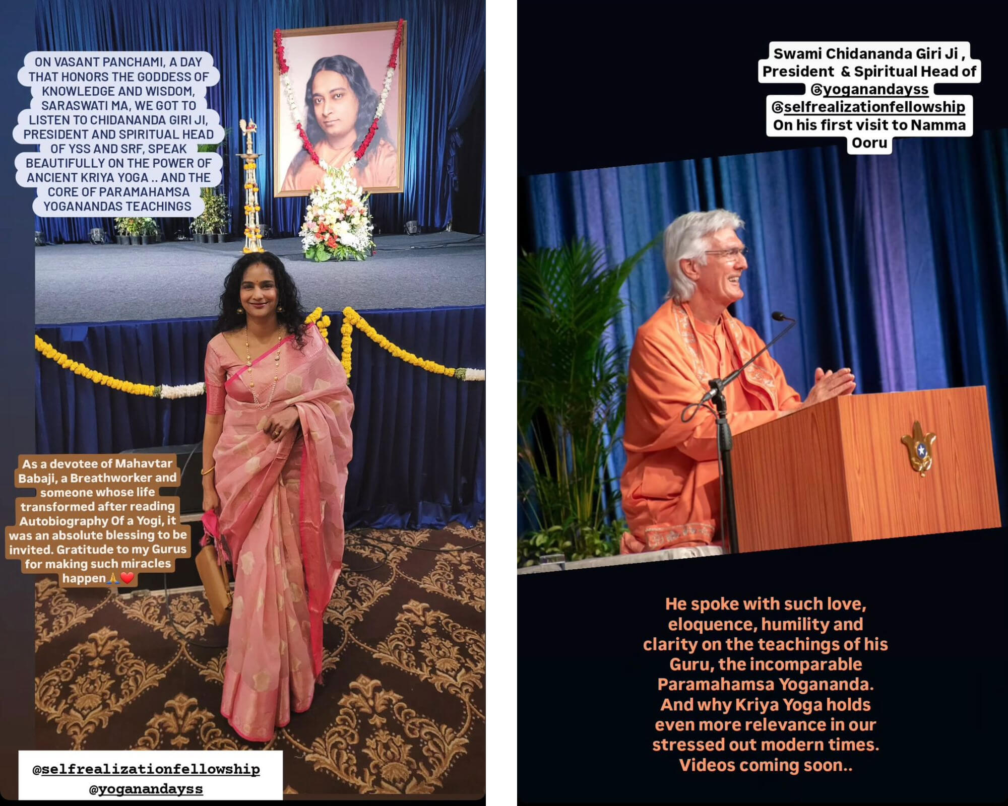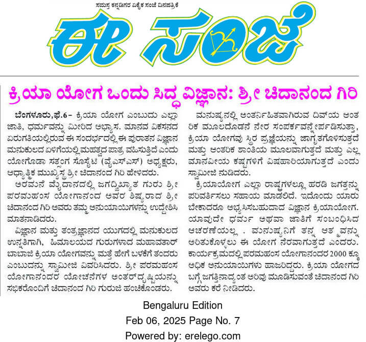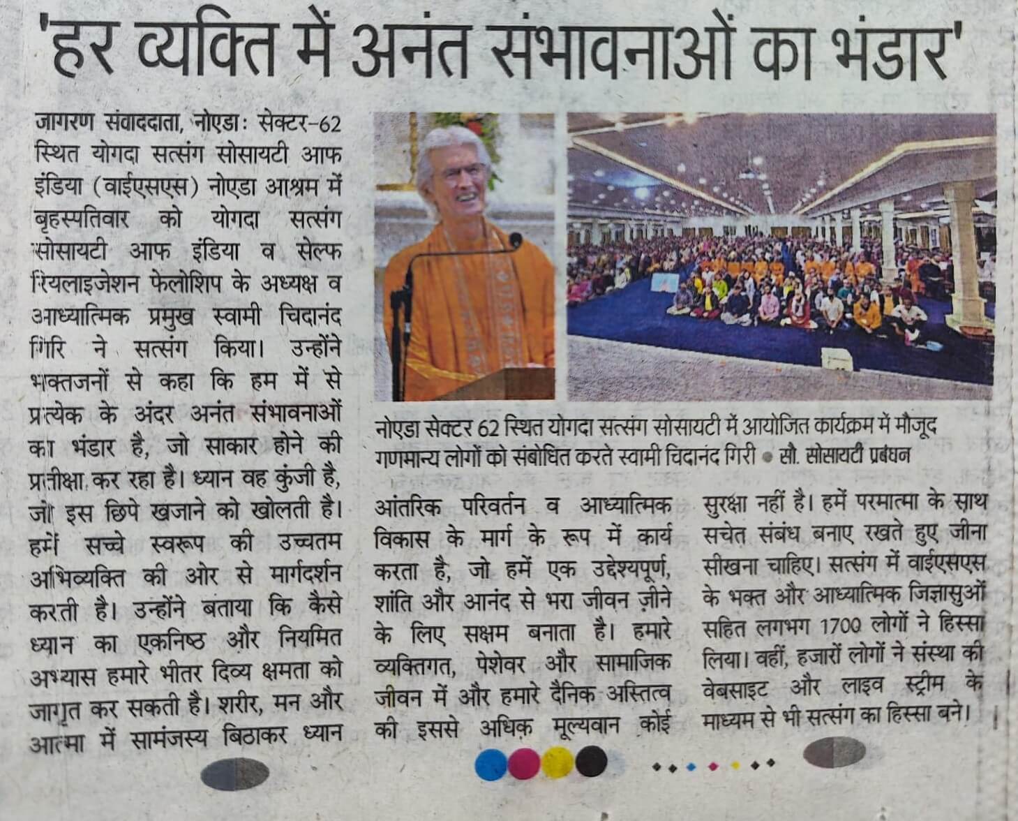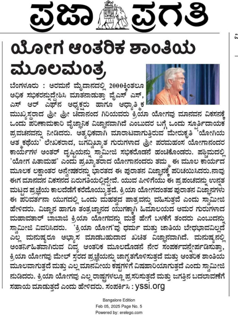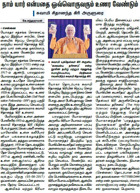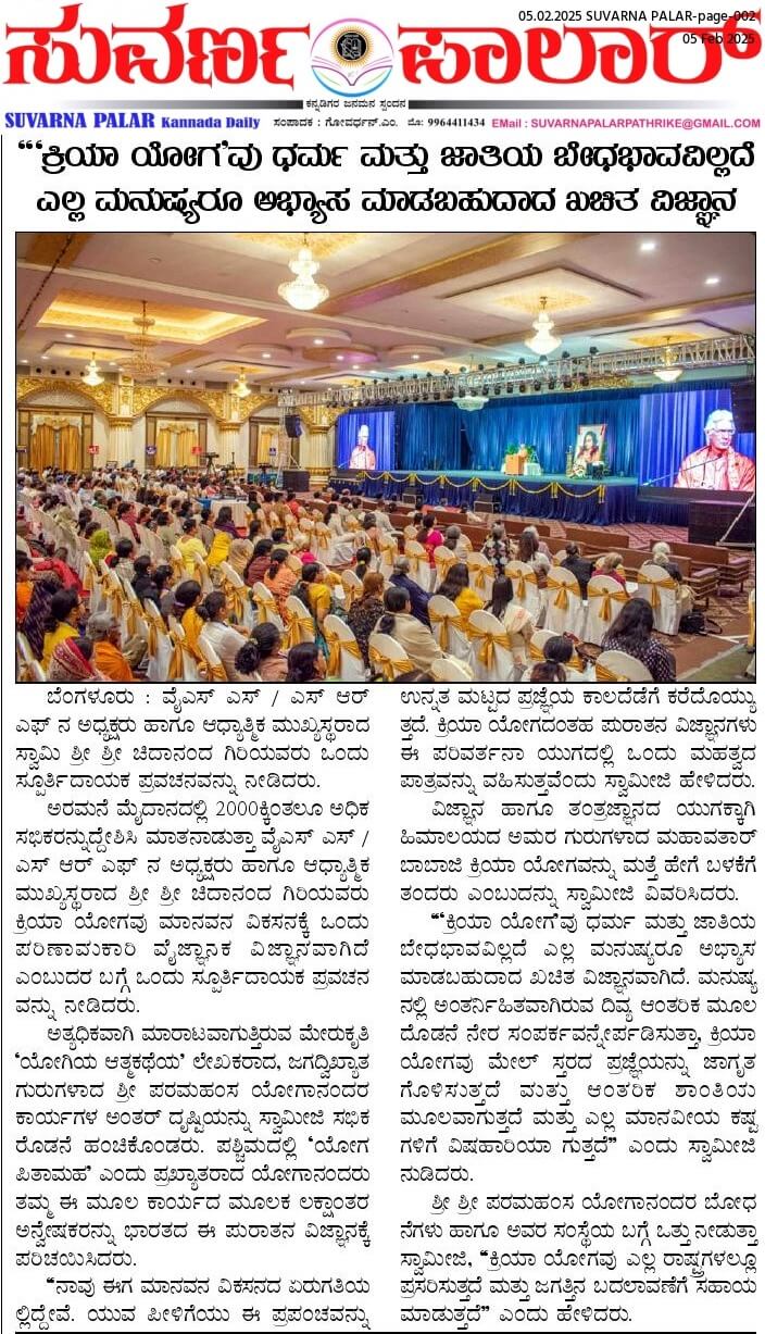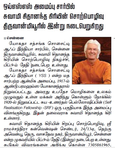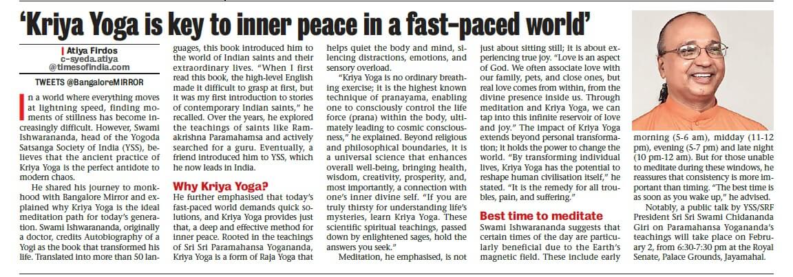 Sri Sri Swami Chidananda Giri, president and spiritual head of Yogoda Satsanga Society of India/Self-Realization Fellowship (YSS/SRF) toured four major cities in India (Bengaluru, Chennai, Ahmedabad, and Noida) and Kathmandu in Nepal, where special one-day programmes were organized.