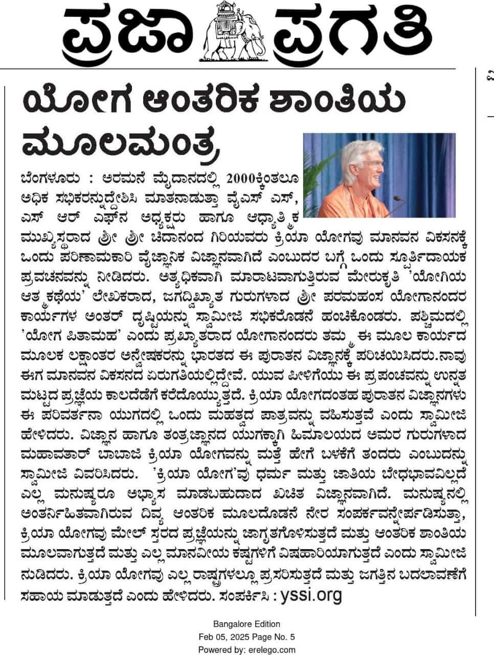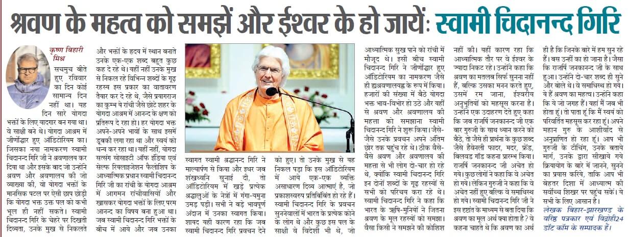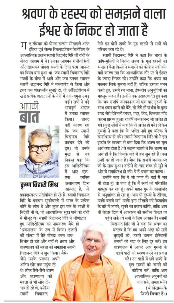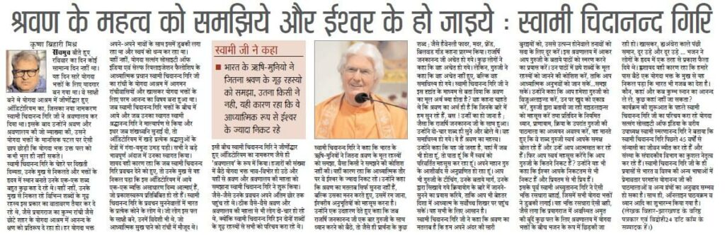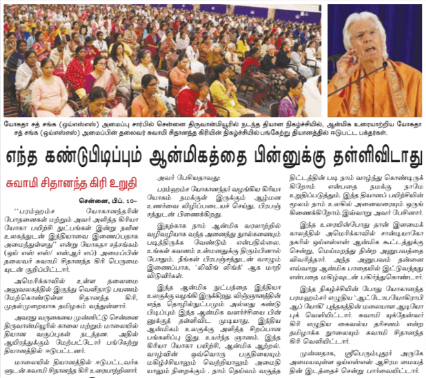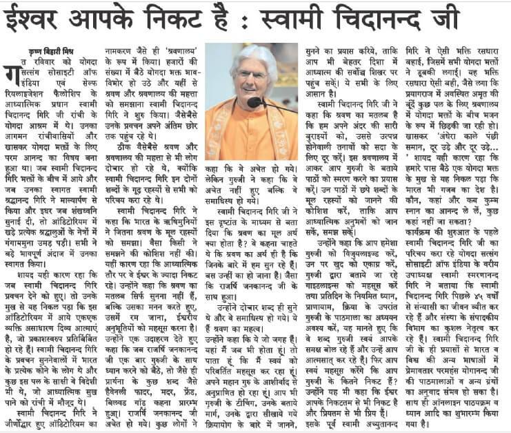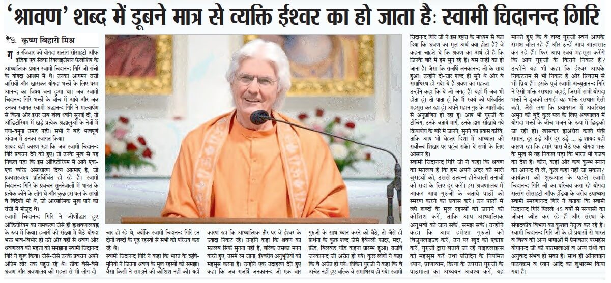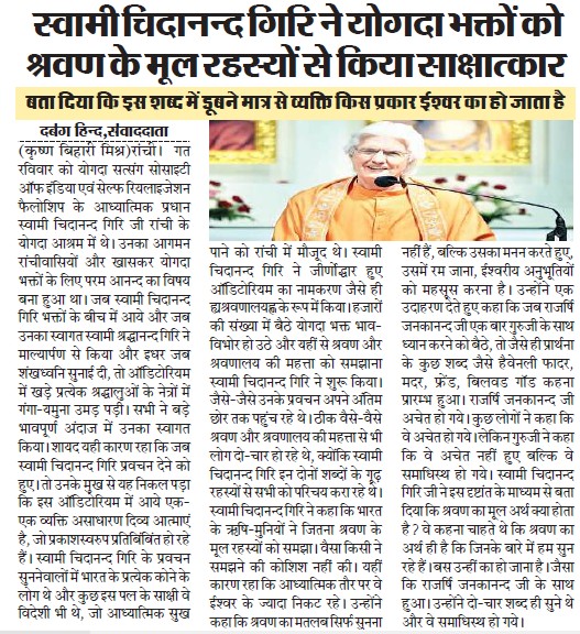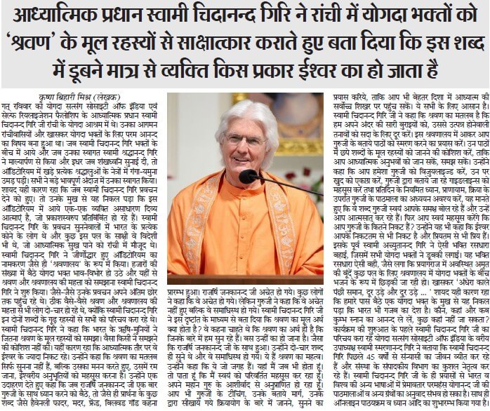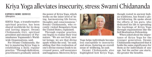 We would like to share with you some of the press coverage that took place during Swami Chidanandaji’s visit.