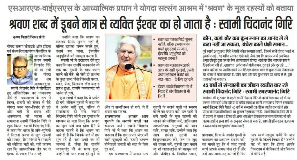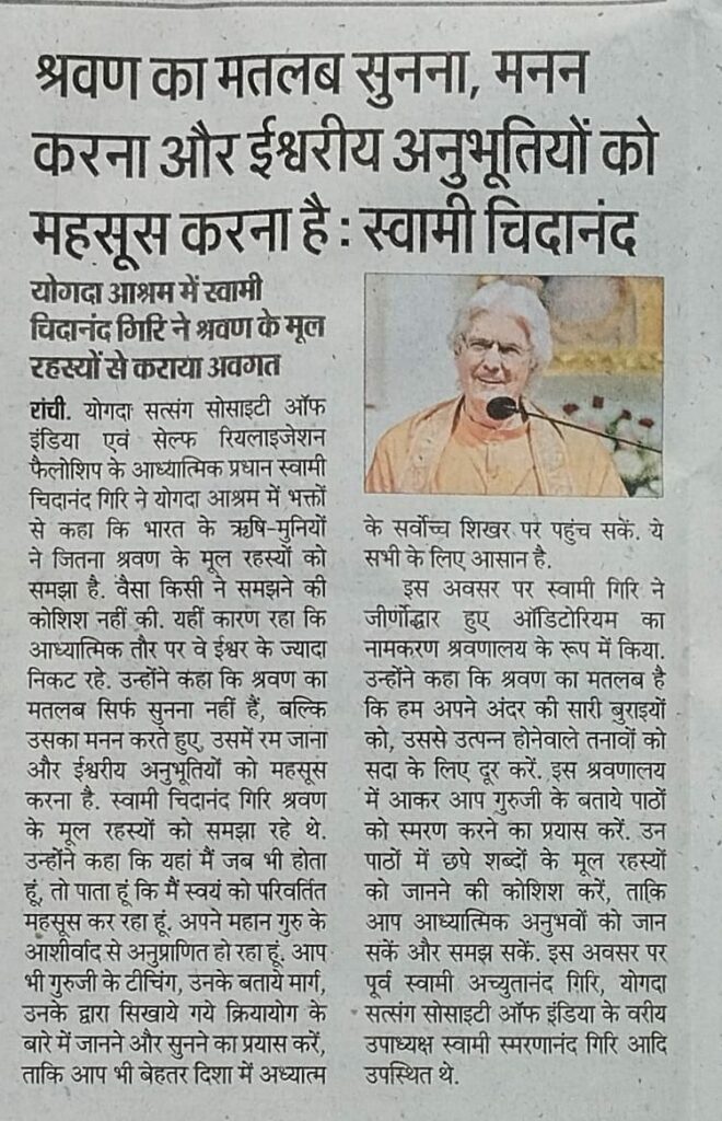 Swami Saralananda Giri, a senior SRF sannyasi who accompanied Swami Chidanandaji during his 2025 India tour, was interviewed by DD India, a leading public broadcast service owned by the Government of India.