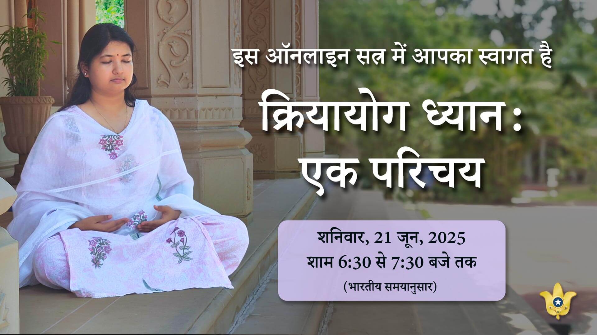 ওয়াইএসএস সন্ন্যাসীরা ইংরেজি ও বিভিন্ন ভারতীয় ভাষায় যোগ-ধ্যান সম্পর্কে প্রাথমিক অধিবেশন পরিচালনা করেছিলেন। কিভাবে দৈনন্দিন জীবনের সকল পরিস্থিতির মাঝেও অন্তস্থিত ভারসাম্য ও শান্তি বজায় রাখা যায় তা অনুসন্ধানের জন্য এই অধিবেশনগুলি বিশেষভাবে ঈশ্বর সন্ধানীদের উদ্দেশ্যে পরিকল্পিত হয়েছিল — পরমহংস যোগানন্দের ক্রিয়াযোগ শিক্ষার অনুশীলনের মাধ্যমে, যা অন্তরে পরমানন্দ জাগ্রত করে এবং শেষ পর্যন্ত আত্মোপলব্ধির দিকে পরিচালিত করে।