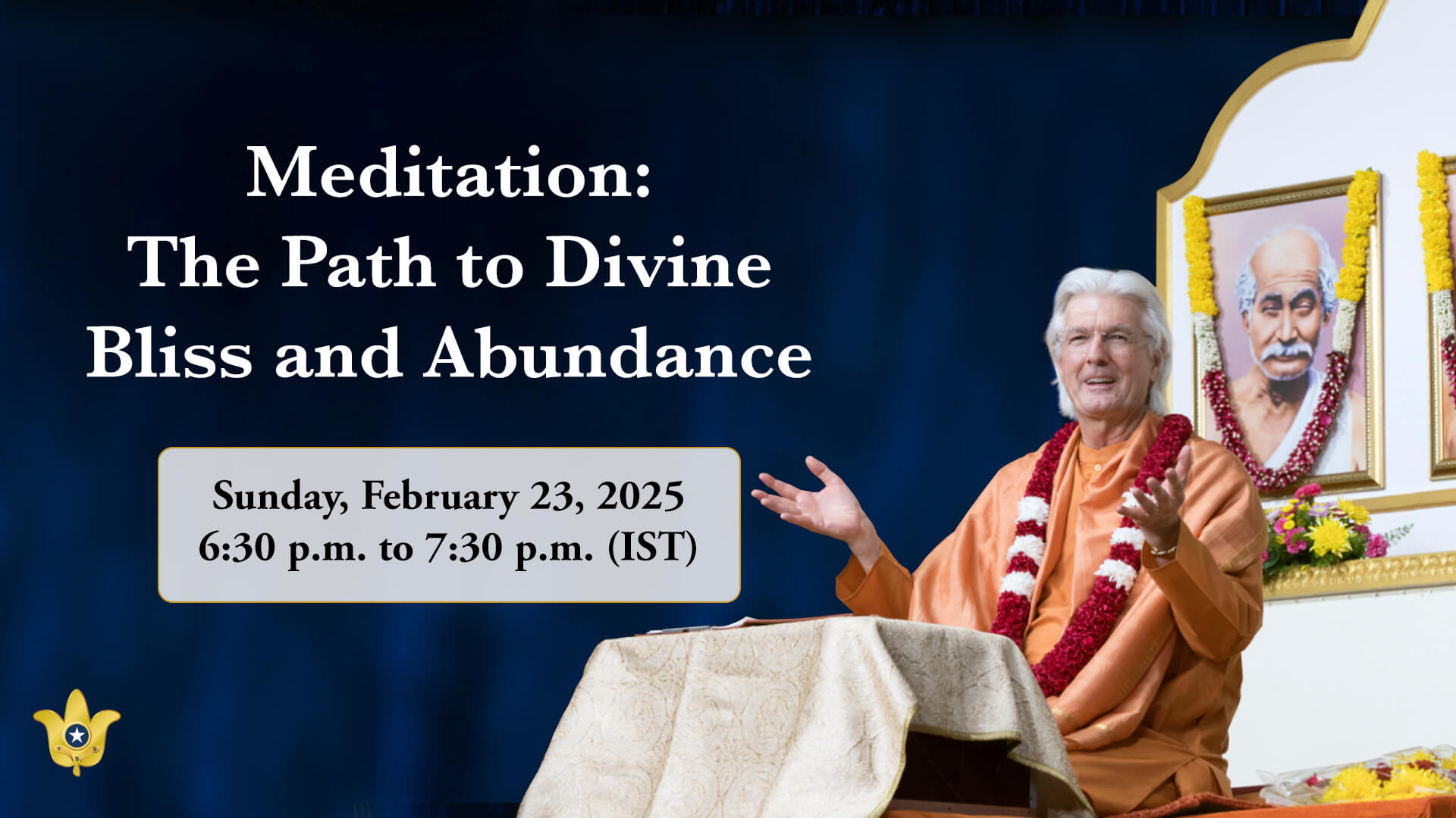 এই শিক্ষাপ্রদ বক্তৃতায় যোগদা সৎসঙ্গ সোসাইটি অফ ইন্ডিয়া /সেল্ফ-রিয়লাইজেশন ফেলোশিপ-এর অধ্যক্ষ ও আধ্যাত্মিক প্র্রধান শ্রীশ্রী স্বামী চিদানন্দ গিরি আমাদের বলবেন যে ধ্যান কীভাবে আমাদের দিব্য কৃপা ও শক্তির অসীম উৎসের সঙ্গে যুক্ত করে, যা থেকে অভ্যন্তরীণ শান্তি, শক্তি ও নিরাপত্তা প্রাপ্ত হয়। ঈশ্বরের সঙ্গে আমাদের অন্তরের সংযোগের প্রতি যত্নবান হলে, আমরা আবিষ্কার করি যে আধ্যাত্মিক সম্পদ কেবল আমাদের অন্তর্জীবনকে রূপান্তরিত করে না, তা আমাদের বহির্জীবনেও ভারসাম্য, স্পষ্টতা ও প্রাচুর্যরূপে প্রকটিত হয়।