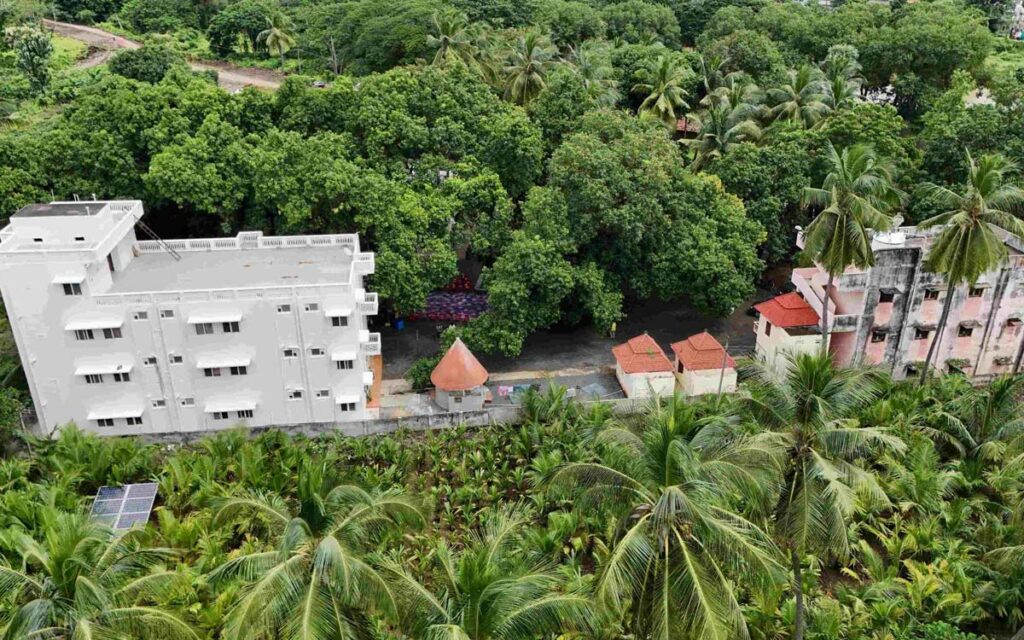 परिसर के आसपास व्यायाम के लिए पगडंडियाँ हैं। भक्तों के ठहरने के लिए 32 कमरों वाला एक आवासीय भवन तैयार किया गया है, जिसमें सभी में बाथरूम जुड़ा हुआ है। इसमें एकल साधकों और दांपत्य साधकों के लिए सिंगल और डबल बैड वाले कमरे हैं। भवन को हाल ही में नवीनीकरण किया गया है और नए बिस्तर, गद्दे, दरवाजे, खिड़कियों, और स्नानघर की सुविधाओं के साथ सुसज्जित किया गया है। प्लंबिंग और विद्युत कार्य का पूरी तरह से नवीनीकरण किया गया है। परिसर में बिजली आपूर्ति के लिए एक बैकअप जनरेटर है। रिट्रीट परिसर में अनेक पेड़ हैं — आम, नारियल, आदि — जिनमें से कुछ 40 साल से अधिक पुराने हैं।