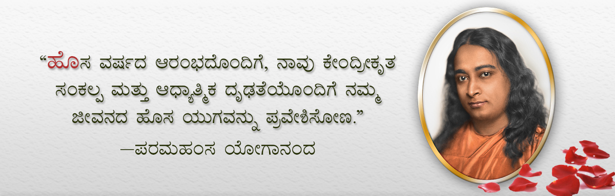 ಗುರುದೇವ ಪರಮಹಂಸ ಯೋಗಾನಂದರ ಆಶ್ರಮಗಳಲ್ಲಿರುವ ನಮ್ಮೆಲ್ಲರಿಂದ ನಿಮಗೆ ಹೊಸ ವರ್ಷದ ಶುಭಾಶಯಗಳು! ಹಾಗೂ ಕ್ರಿಸ್ಮಸ್ ಋತುವಿನಲ್ಲಿ ಪ್ರಪಂಚದಾದ್ಯಂತ ನಮಗೆ ಬಂದ ಶುಭ ಹಾರೈಕೆಗಳು ಮತ್ತು ಶುಭ ಸಂದೇಶಗಳಿಗಾಗಿ ಹಾಗೂ ಕಳೆದ ವರ್ಷದುದ್ದಕ್ಕೂ ನೀವು ನಮಗೆ ಹಲವಾರು ರೀತಿಯಿಂದ ನೀಡಿದ ನೆರವಿಗಾಗಿ ಪ್ರೀತಿಯ ಧನ್ಯವಾದಗಳು.