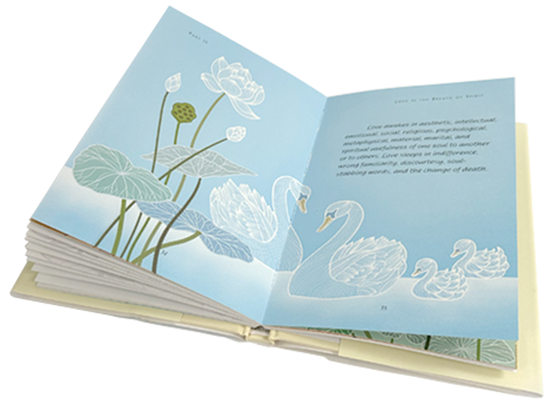 “ಪ್ರೀತಿಯನ್ನು ಹುಡುಕುವವರು ಅನೇಕರಾದರೂ, ಪ್ರೀತಿ ಎಂದರೇನು, ಅದನ್ನು ಹೇಗೆ ಕಂಡುಹಿಡಿಯುವುದು ಎಂಬುದನ್ನು ಅರಿತವರು ತುಂಬಾ ವಿರಳ. ಪ್ರೀತಿಯು ಅನಂತನ ಹೃದಯದಿಂದ ಹೊಮ್ಮಿ, ಮಾನವ ಆತ್ಮಗಳಲ್ಲಿಗೂ ಎಲ್ಲ ಸತ್ವಗಳಲ್ಲಿಗೂ ಹರಿಯುವ ಆನಂದದ ಅದೃಶ್ಯ ಜಲಾಶಯವಾಗಿದೆ. ಇತರರ ನಿಜವಾದ ಸಂತೋಷದಲ್ಲಿ ನಾವು ಅನುಭವಿಸುವ ಆನಂದವೇ ಪ್ರೀತಿ.”