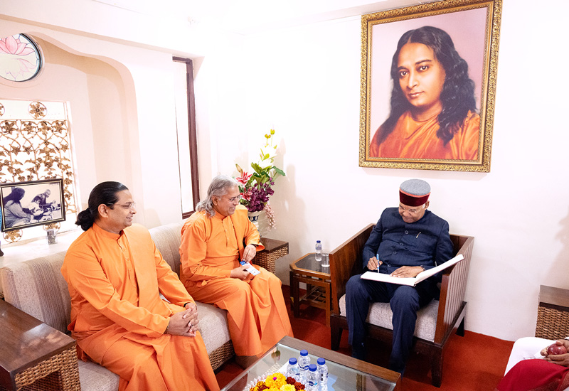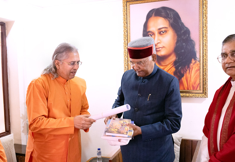 ஆசிரம விருந்தினர் இல்லத்தில் நடைபெற்ற ஒரு கூட்டத்தின் போது, ஸ்வாமி வாசுதேவானந்தா ஸ்ரீ கோவிந்த் அவர்களுக்கு ஒரு சால்வை, த யோகா ஆஃப் த பகவத் கீதா என்ற புத்தகத்தின் புதிதாக வெளியிடப்பட்ட இந்தி நூல் மற்றும் 2026 YSS சுவர் காலண்டர் ஆகியவற்றை வழங்கினார். அவருடன் வந்திருந்த வேறு சில பிரமுகர்களுக்கும், அதே புதிதாக வெளியிடப்பட்ட நூலுடன் சால்வை மற்றும் காலண்டர் ஆகியவையும் வழங்கப்பட்டன.