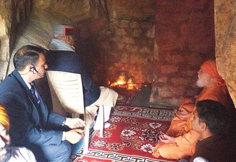 பின்னர் அவர் பாபாஜி குகைக்குச் சென்றார், அங்கு ஸ்வாமி விஸ்வானந்தா நுழைவாயிலில் அவரை வரவேற்று குகைக்குள் அழைத்துச் சென்றார். அவர் சுமார் 15 முதல் 20 நிமிடங்கள் தியானம் செய்தார், அதன் பிறகு ஸ்வாமி விஸ்வானந்தா அவருக்கு ஒரு ருத்ராட்ச மாலை பரிசளித்தார்.
